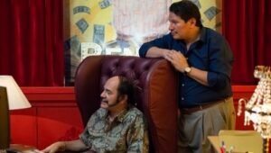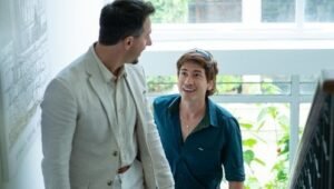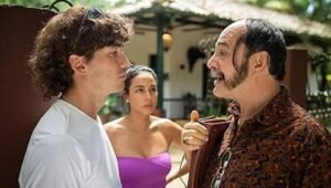 Rigo Capitulo 3, Evaristo (Julián Arango) quiere contactarse con Pedro Durango (Mauricio Mejía) para hacer negocios, por lo que le pide a Carmelo (Emmanuel Restrepo), estar pendiente de su llegada pues también quiere que él se relacione con las hijas del empresario.